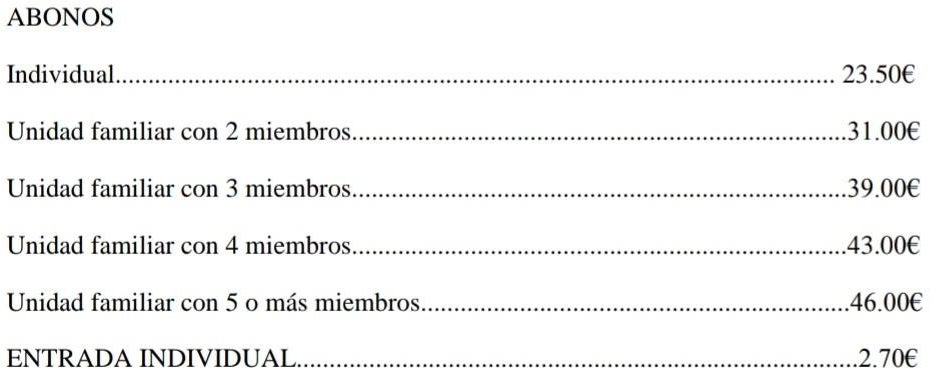 Precios abonos y entradas: