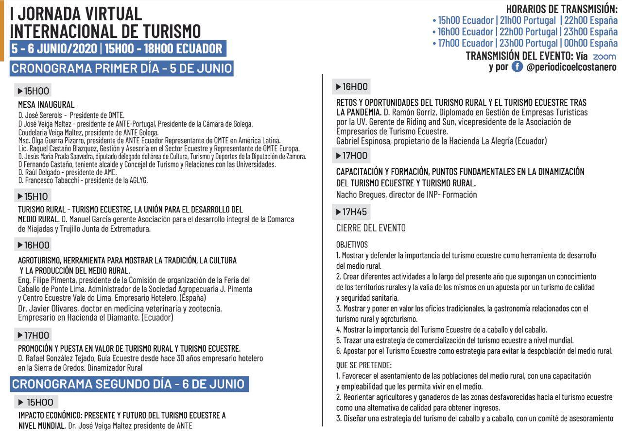 El evento, que se lleva a cabo mediante la aplicación 'ZOOM', se podrá seguir además por Facebook en @periodicoelcostanero y contará con participación de expertos de Ecuador, España y Portugal.