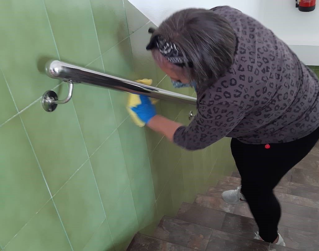 Los alumnos y alumnas del curso de 'Limpieza de superficies y mobiliario en edificios y locales' están desarrollando sus prácticas en los distintos centros educativos de Miajadas.