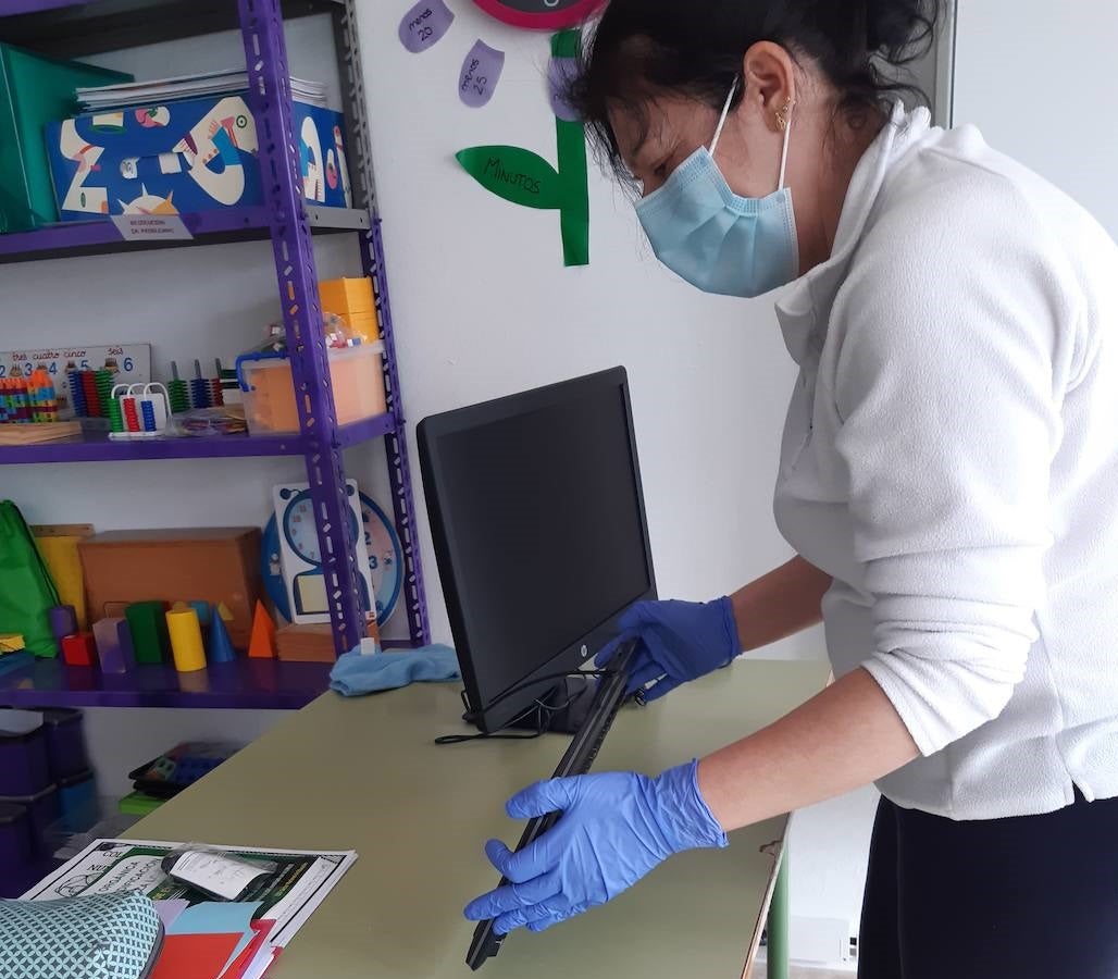 Los alumnos del curso de 'Limpieza de superficies y mobiliario en edificios y locales' realizan prácticas en los centros educativos