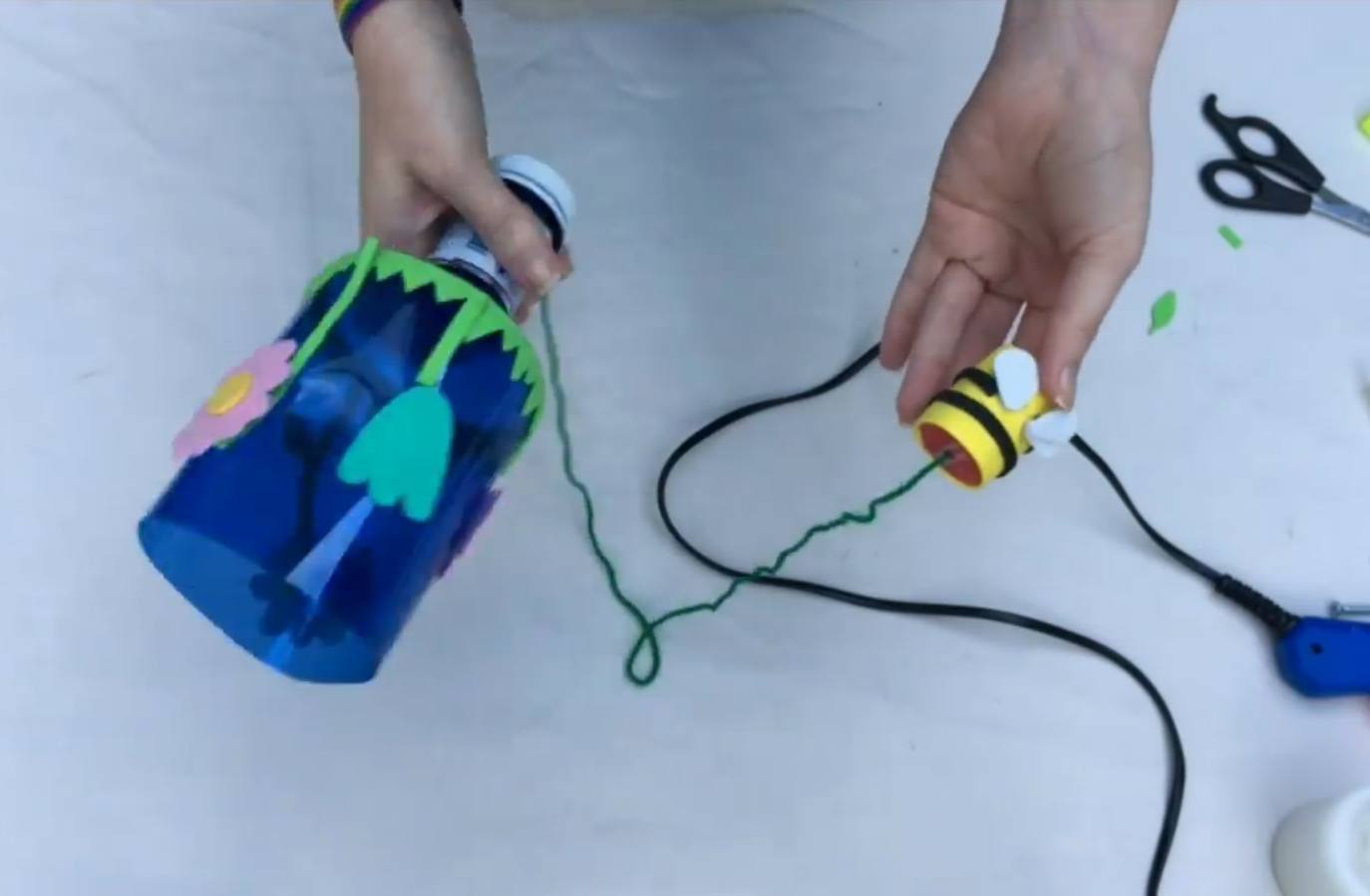 Los alumnos de la Ludoteca juegan a atrapar la abeja con la botella