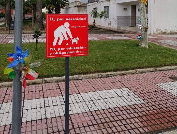 Dentro del marco de esta campaña, el Ayuntamiento ha distribuido carteles por Miajadas, Alonso de Ojeda y Casar de Miajadas con el fin de conseguir una mayor responsabilidad respecto a la tenencia de animales por parte de los ciudadanos, recordando a los dueños que deben recoger las cacas de sus perros. En ellos se puede leer: 'Él, por necesidad. Yo, por educación y obligación'.