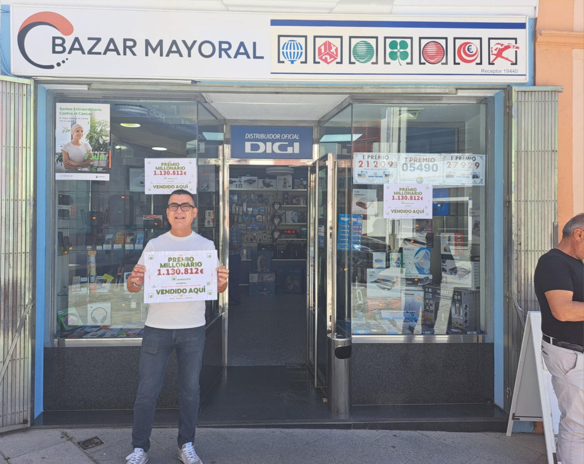 Esta Bonoloto es el cuarto gran premio del establecimiento en los últimos dos años y medio, junto con un Gordo de Navidad y dos primeros premios de la Lotería NacionalUn nuevo premio millonario en Extremadura llegó de la mano de Bazar Mayoral, en Miajadas, con un acertante de primera categoría en la Bonoloto y un premio que asciende a 1.130.812 euros.