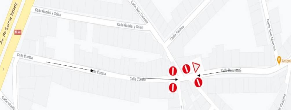 Calle Cuesta: El sentido único pasa a ser desde la avenida García Siñériz hasta calle San Quintín.