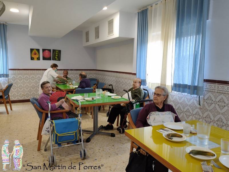 Cada día se elaboran en el centro tres menús: el basal, el diabético y el triturado, y, si es necesario, también cuentan con un menú de dieta blanda. Los cocineros respetan y tienen en cuenta las costumbres gastronómicas de los mayores, como el cocido tradicional, uno de los favoritos de los residentes, y fruta de temporada. Comedor San Martín de Porres