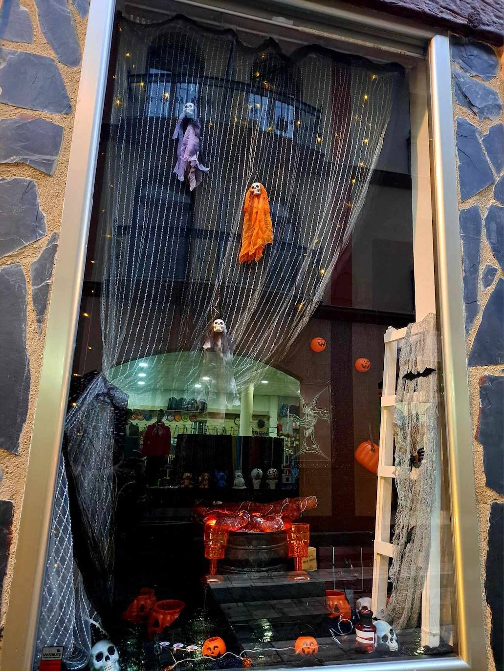 Desde la pasada semana y hasta mañana martes, 31 de octubre, los establecimientos y sus escaparates se han convertido en lugares tenebrosos, decorados con la temática. Y es que las calles de la localidad, impregnadas de los colores naranja, lila y negro, se han llenado de calabazas, telas de araña y sombreros de bruja.