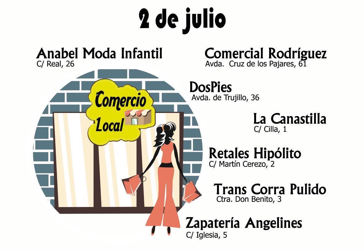 Mañana jueves, 2 de julio, participarán La Canastilla del Bebé, Retales Hipólito y Cándido, Anabel Moda Infantil y Juvenil, Maquinaria Agrícola Comercial Rodríguez, Zapatería Angelines, Trans-Corra Pulido y Dospies Zapaterías.