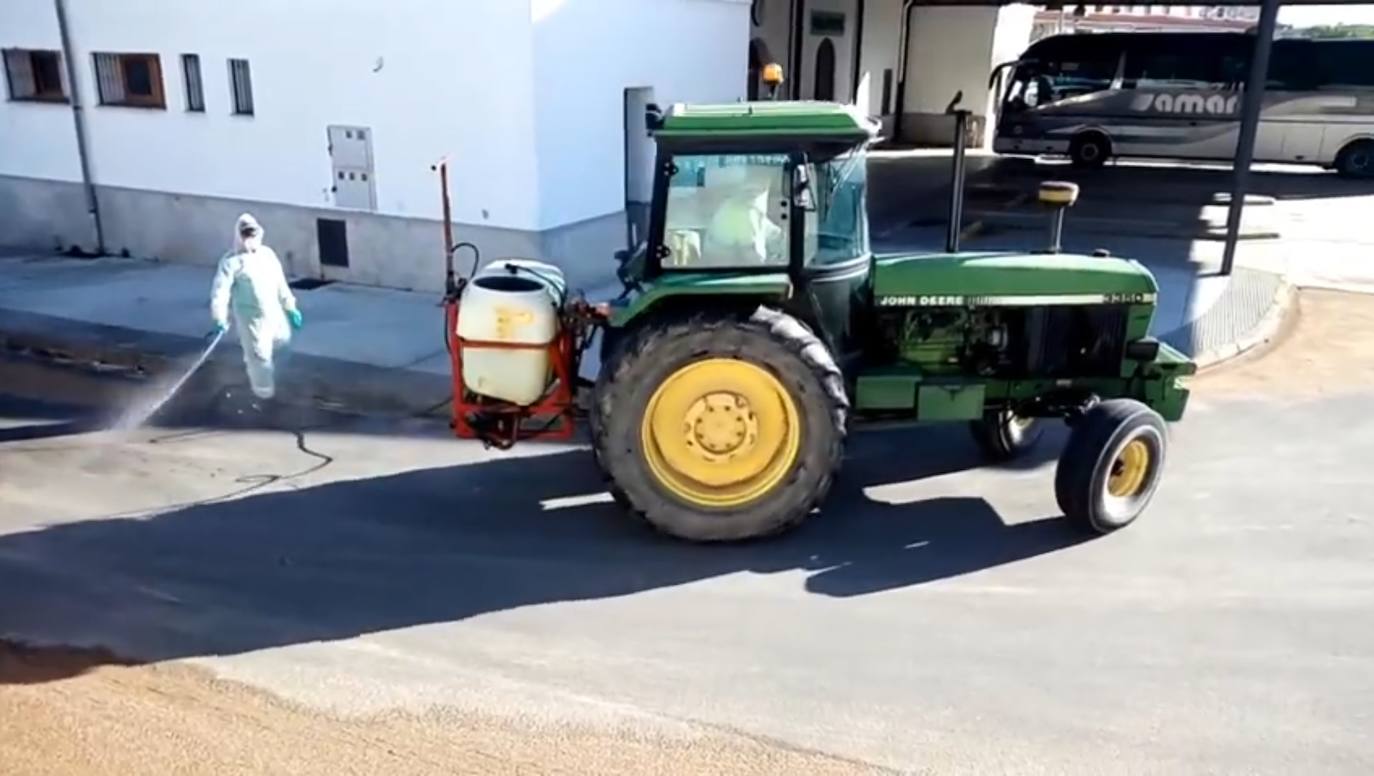 Un tractor del Ayuntamiento, junto con los operarios, comenzaron ayer con las tareas de desinfección con hipoclorito sódico en los lugares indicados por las autoridades, como la zona de la residencia de mayores San Martín de Porres, ambos tanatorios, zonas del Sexpe, Cuartel de la Guardia Civil, Supermercados Día, Centro de Atención Administrativa, Farmacia-Óptica Ruiz, estación de autobuses, centro de salud, alimentación La Estación, alimentaciones Pino, farmacia Tomás Blanca, Ángel Ortiz García SL, Palacio Obispo Solís, farmacia Álvarez, Ayuntamiento de Miajadas, zona de entidades bancarias, iglesias de Santiago y Belén, Correos y Telégrafos, Novoger Miajadas, supermercado Mercadona, estacionamientos públicos, plaza La Llanada, mercado de abastos, Hipercash Miajadas, la Multitienda de Mena (El Palote), plaza Juan de Austria, centro de día y centro ocupacional.