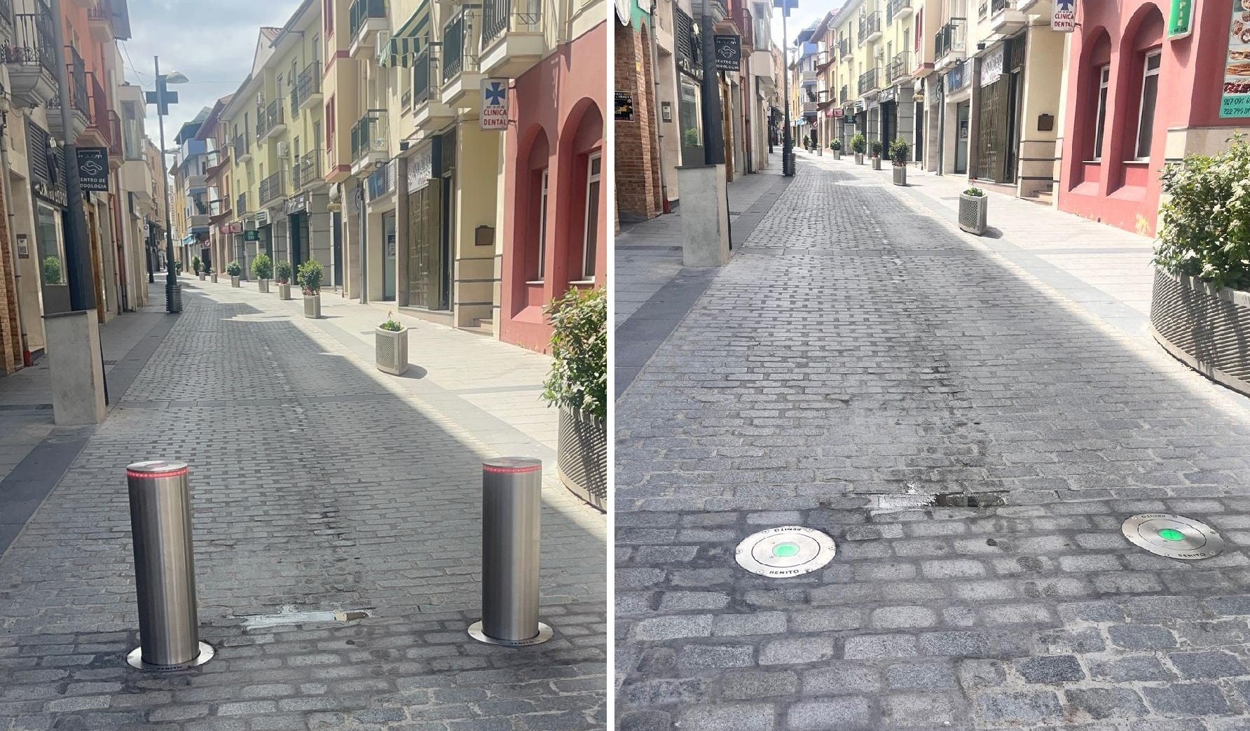 Para ello se han instalado dos bolardos o pilonas automáticas en la Avenida de Trujillo. Se trata de unas pilonas automáticas que tendrán la función de cortar el tráfico rodado para convertirlo temporalmente en peatonal.