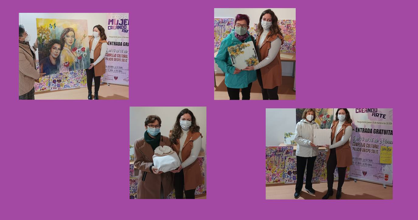 Cuatro mujeres han sido obsequiadas con el arte de cuatro mujeres miajadeñas tras el sorteo realizado entre todos los visitantes a la exposición 'Mujeres creando ... arte', cuyas autoras son todas mujeres de Miajadas.
