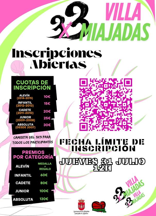 El día 2 del próximo mes de agosto, organizado por el Club de Baloncesto Miajadas, se celebrará el Torneo 3x3 'Villa de Miajadas', una jornada para que los amantes del baloncesto disfruten de su deporte favorito durante la época estival.