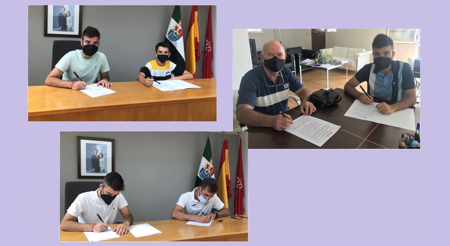 Jesús Sánchez, Concejal de Deportes, ha firmado los convenios con los diferentes presidentes de los clubes deportivos: Alberto Masa Calvo, Presidente del Club Atletismo Miajadas; Lorenzo Vera Barragán, Presidente del Moto Club Miajadas y Samuel Tapia Redondo Samuel Tapia - Piloto.