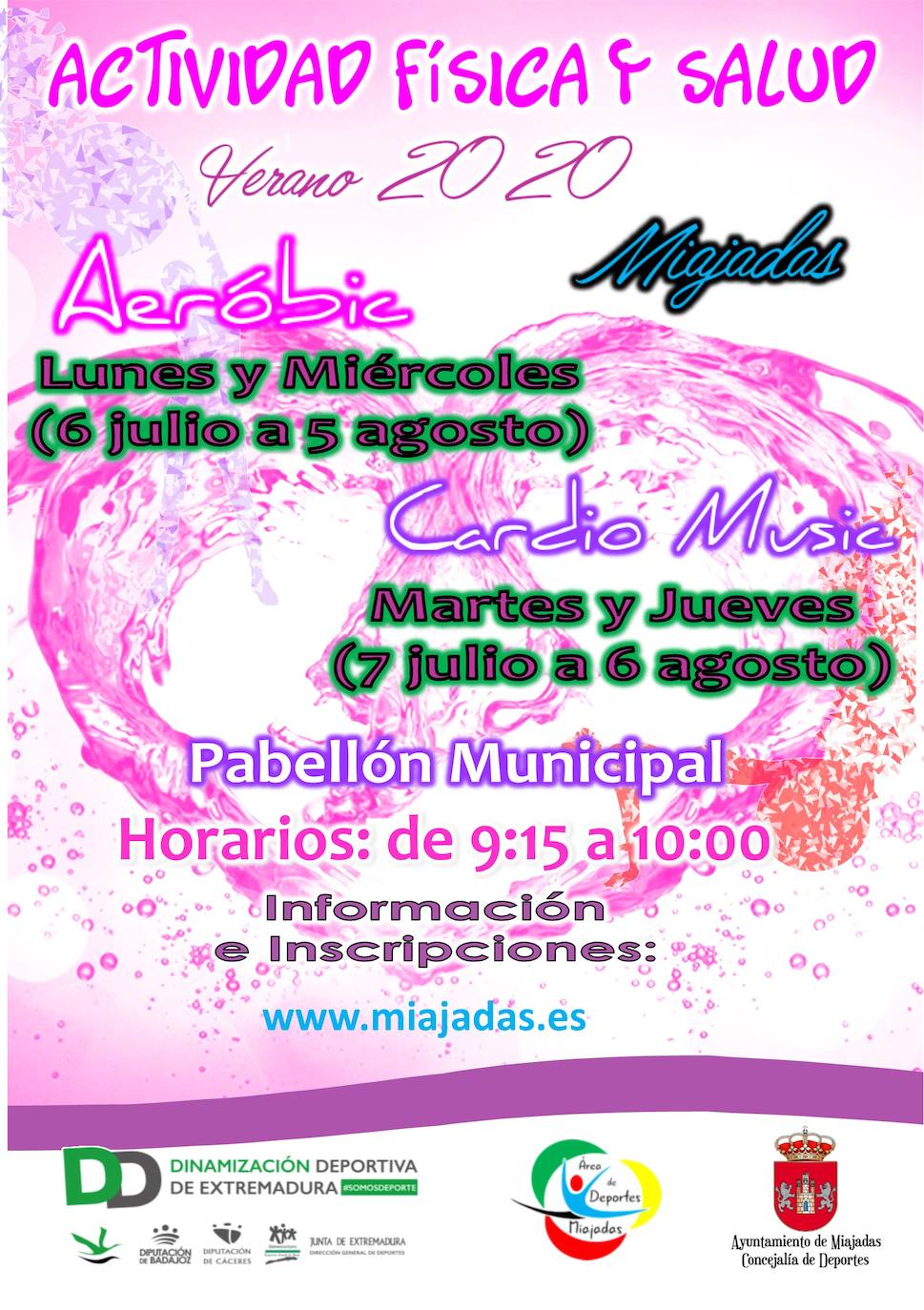 Las clases, dirigidas a mayores de 16 años, tendrán una capacidad de 25 personas cada grupoLas clases de actividad física y salud de aeróbic y cardio music vuelven este verano del 6 de julio al 5 de agosto en el pabellón municipal.