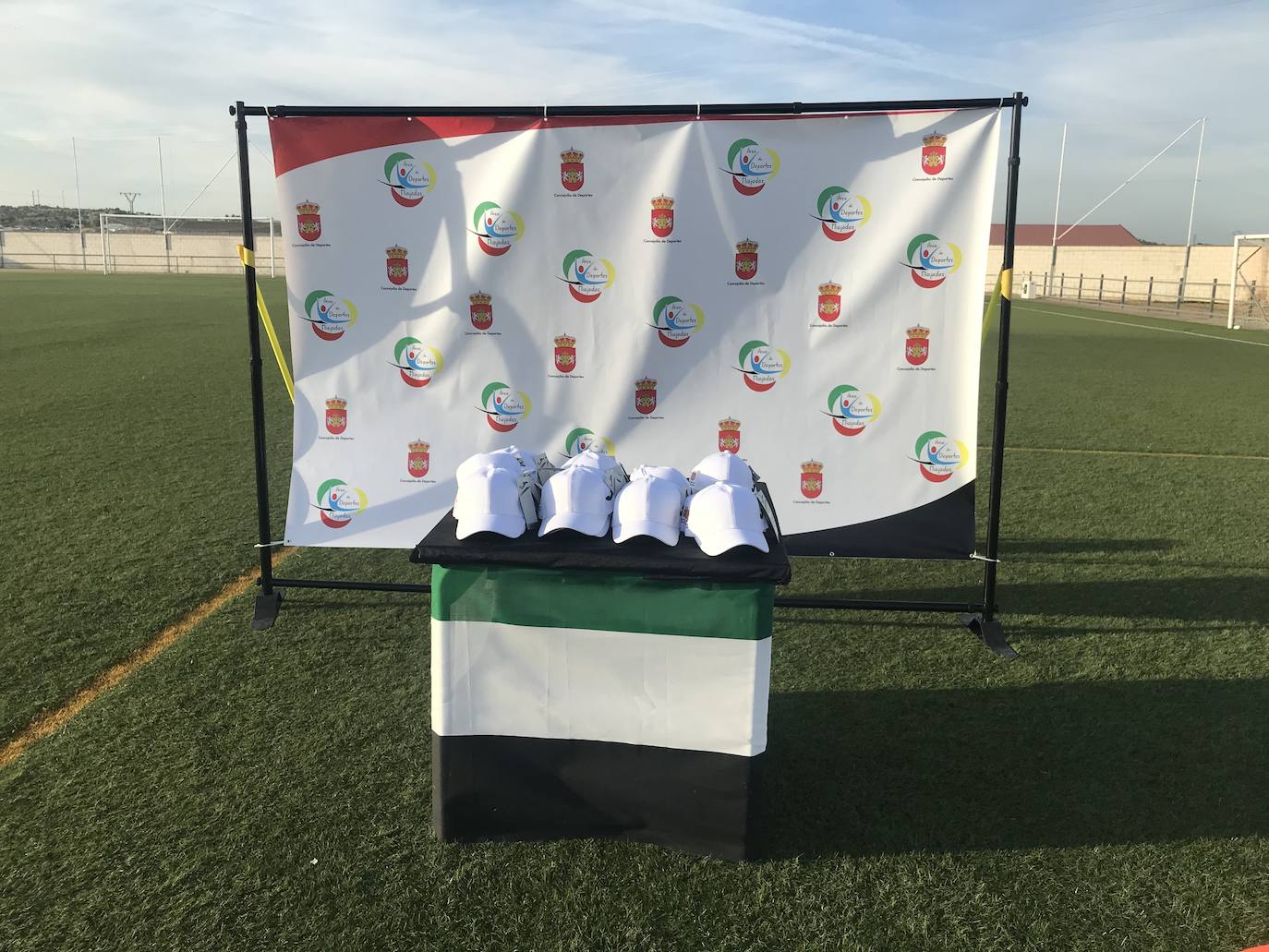 El concejal miajadeño entregó un obsequio deportivo a cada uno de los componentes del equipo como reconocimiento y amuleto de cara al próximo domingo, cuando se enfrentarán al CD Diocesano en Cáceres para luchar por ese puesto a segunda.