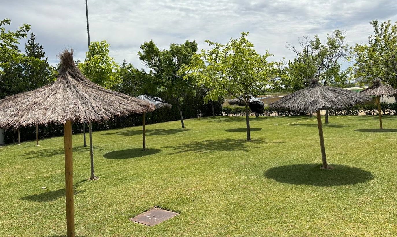 Esta temporada en la zona de la piscina municipal el Ayuntamiento ha ampliado la superficie de zona de playa, es decir, más espacio disponible con césped, ya plantado, para el uso y disfrute de sus usuarios. Además, también se han instalado más sombrillas para ofrecer sombra, logrando así una mayor comodidad a sus usuarios.