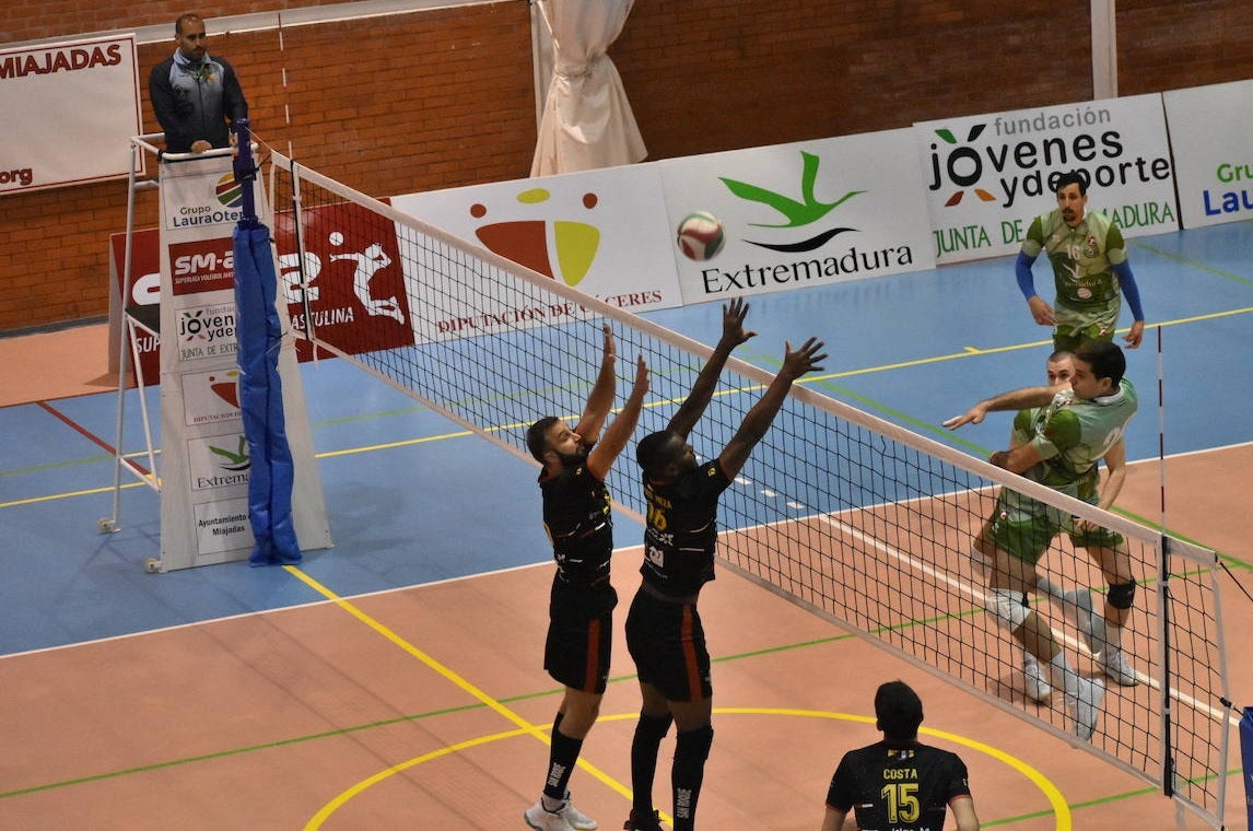 En el segundo tiempo los locales volvieron a tomar una rápida ventaja, alcanzando pronto el 8-3 y el 14-7. Sin apenas dar tiempo de tomar conciencia de ello, los de Juan Luis Cabanillas cogieron carrerilla con determinación y, dejando atrás a sus contrincantes en el 23-10, se hicieron también con el segundo set del encuentro en el pabellón miajadeño por 25-12.