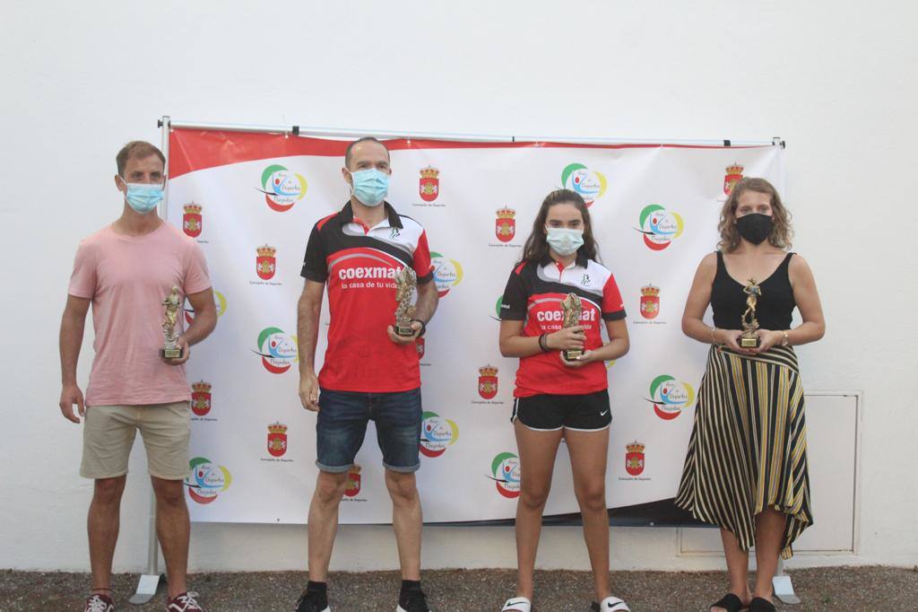 Los cuatro ganadores asistieron a recoger sus correspondientes trofeos de una carrera atípica en un año tan diferente. Javier Canelada viajó desde Trujillo para recibir su trofeo como campeón en la categoría Absoluta Masculina, el mismo que recibió la miajadeña Mari Cruz Parras en la categoría Absoluta Femenina. Por su parte, los también componentes del Club de Atletismo Miajadas, Sergio Redondo y Ana Belén Sauceda asistieron a la entrega para recoger sus trofeos como campeones de la categoría Veteranos Masculina y Femenina.