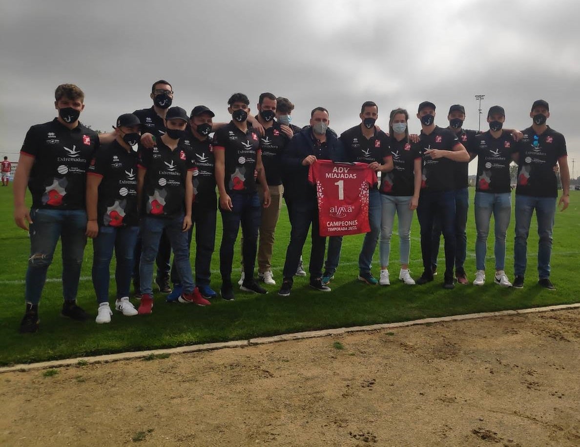 Tras ello, han asistido al Estadio Municipal de la localidad invitados por el Club Deportivo Miajadas, dando ejemplo del compañerismo existente entre los distintos deportes de la localidad. Y es que ambos equipos de fútbol, local y visitante, han hecho el pasillo a los jugadores de voleibol como campeones de temporada en su grupo. Vídeo homenaje en el Estadio Municipal de Miajadas