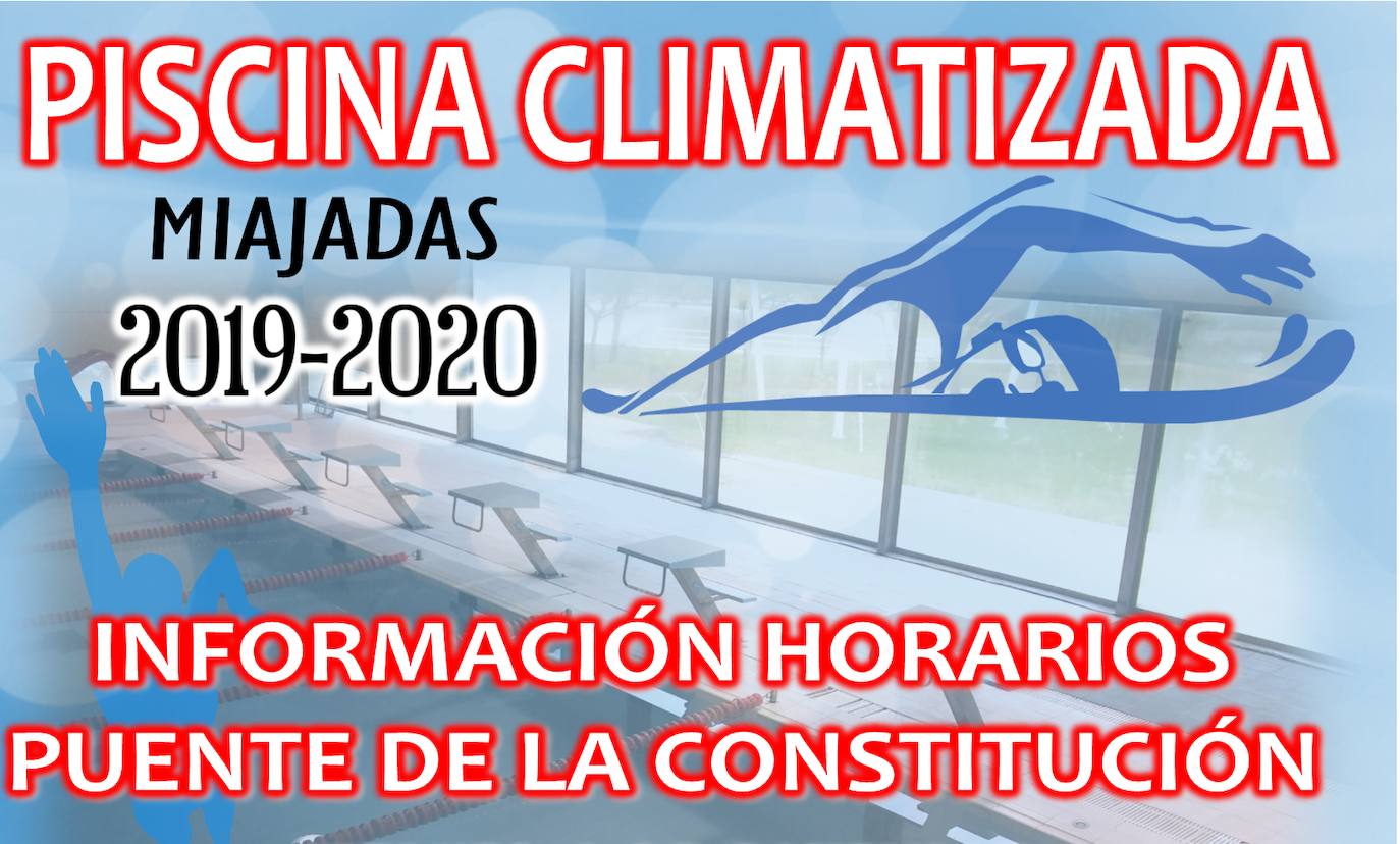 La piscina climatizada de Miajadas sufrirá una modificación de horarios durante estos cuatro díasLa Piscina climatizada de la localidad permanecerá cerrada los días festivos de este 'Puente de la Constitución', exactamente los días 6 y 9 de diciembre, éste último por prolongación de festivo de domingo a lunes.