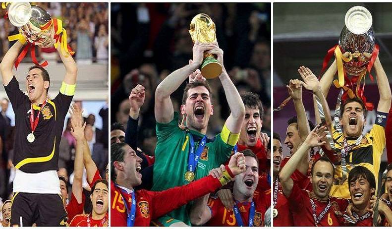 Como la Eurocopa de 1964, segunda edición del torneo y celebrado en España, donde la Selección Española se proclamó campeón tras derrotar a la Unión Soviética por 2-1 en la final disputada en el Estadio Santiago Bernabéu. Pero, sin duda, la época dorada de la absoluta fue el 'Triplete', que comenzó con la Eurocopa de Austria-Suiza 2008, después de vencer en la final a Alemania por 1-0, el Mundial de Sudáfrica 2010, tras ganar 0-1 a Holanda en la final con el famoso gol de Iniesta, y la Eurocopa de 2012 de Ucrania y Polonia, en la que ganó la final 4-0 frente a Italia y en la que se convirtió en la única selección de fútbol en ganar dos Eurocopas consecutivas y la única selección nacional en ganar el 'Triplete'.