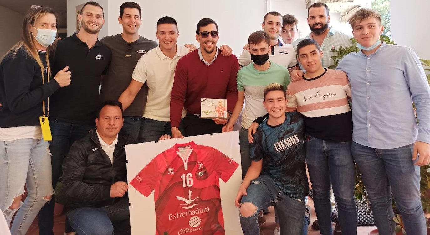 Le hicieron entrega de una placa en la que le agradecen su esfuerzo, dedicación y compromiso, y su dorsal enmarcado para que este miajadeño de adopción nunca olvide estos nueve añosManuel Barrios 'Peri', segundo capitán del Extremadura Grupo Laura Otero de Superliga 2 Masculina de voleibol, ya anunció a la afición su despedida del club en el último partido de liga.