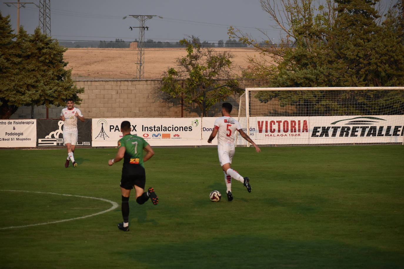 Aunque los equipos se fueron al descanso con empate al marcador, la segunda parte fue toda de los miajadeños. Nada más volver a pisar el campo en la segunda parte, los anfitriones tuvieron claras ocasiones con Falé, Ángel Méndez o Alejandro Rubio, y, de no ser por el guardameta visitante, la victoria habría sido mayor.