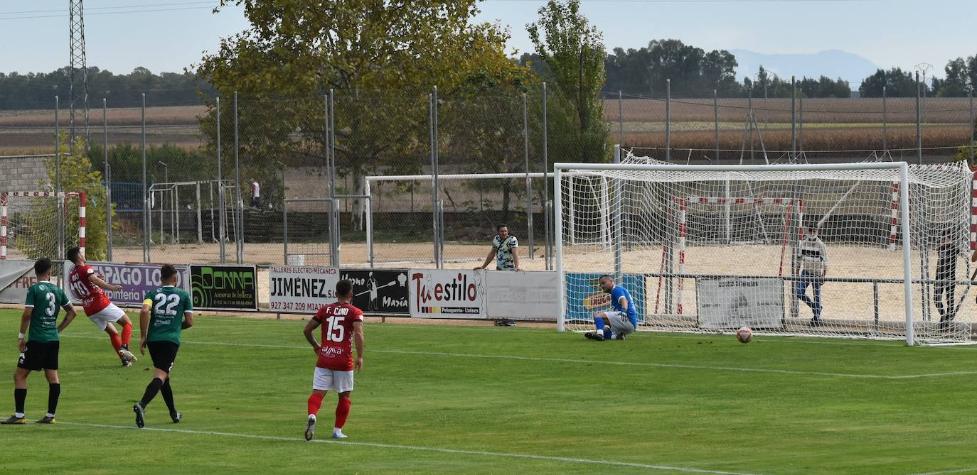 La segunda parte nada tendría que ver con la primera, y se fue tornando extraña según pasaban los minutos. El Moralo no mostraba ese ansia de gol que toca con el marcador en contra, y en un par de llegadas a portería el equipo visitante parecía buscar el penalti, de hecho en la segunda de ellas Buben vio la amarilla nada más levantarse del suelo.