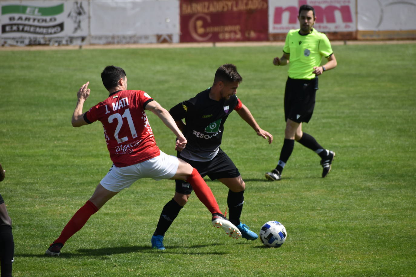 Árbitro: Izquierdo Valle (Cáceres). Tarjeta amarilla a Ramiro y Mati, del C.D. Miajadas; y a Parada y José Antonio Ruiz (entrenador) del Extremadura B.