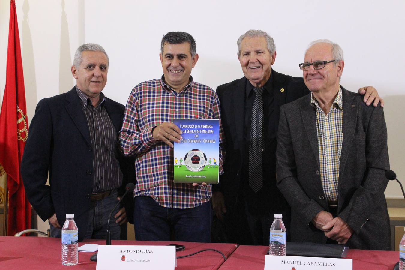 Manolo Cabanillas presentó ayer en el complejo cultural Palacio Obispo Solís su libro Planificación de la enseñanza en las escuelas de fútbol base, que le ha llevado cinco años de trabajo, acostándose a las cuatro y a las cinco de la mañana. En el acto le arroparon el alcalde, Antonio Díaz, y los futbolistas miajadeños que estuvieron bajo sus instrucciones, Félix Loro y Juan Jiménez.
