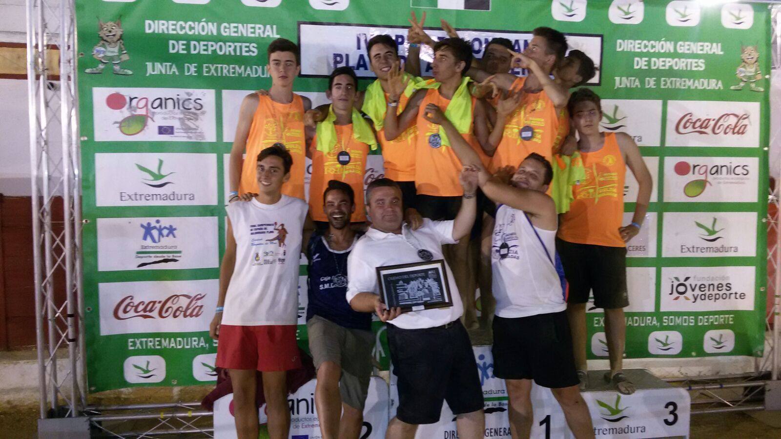 Los cadetes de la AD Balonmano Miajadas se han proclamado campeones de Extremadura este fin de semana en la modalidad de playa. Lo han hecho tras ganar el II Torneo Villa de Miajadas y el II Torneo Batalla de la Albuera y quedar subcampeones en el IV Open Memorial Manuel Álvarez Hurtado de Alburquerque. Ahora los miajadeños viajarán hasta Laredo (Santander) para jugar el Campeonato de España de Balonmano Playa por segundo año consecutivo.