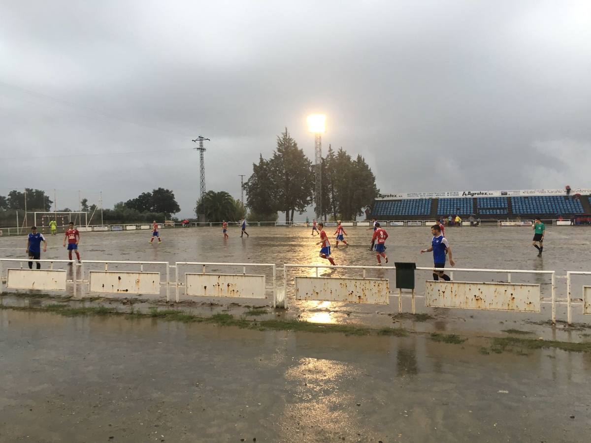 Un empate a cero es lo que pudo lograr ayer el CD Miajadas en su visita a Jaraíz de la Vera, en un campo de fútbol que más que lo propiamente dicho parecía una piscina olímpica.