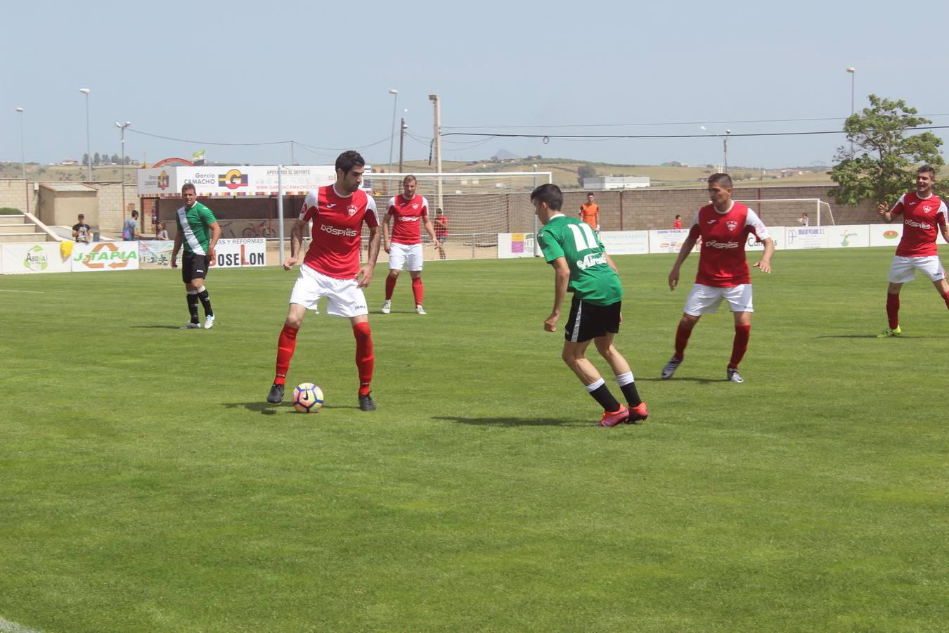 Tras la fiesta del fútbol de ayer domingo en el último partido en el municipal, el CD Miajadas tendrá en su última jornada una prueba de fuego frente al rival directo, el Ciudad de Plasencia. A los miajadeños solo les vale ganar para empatar a puntos con los placentinos y poder jugar la fase de ascenso por el gol average. Los tomateros golearon 8-0 al CD Navalmoral en un día totalmente festivo en el que la directiva del club ofreció paella gratis para todos los socios y habilitó una pantalla en el mismo campo de fútbol para ver el partido que enfrentó al Real Madrid y al Fútbol Club Barcelona.