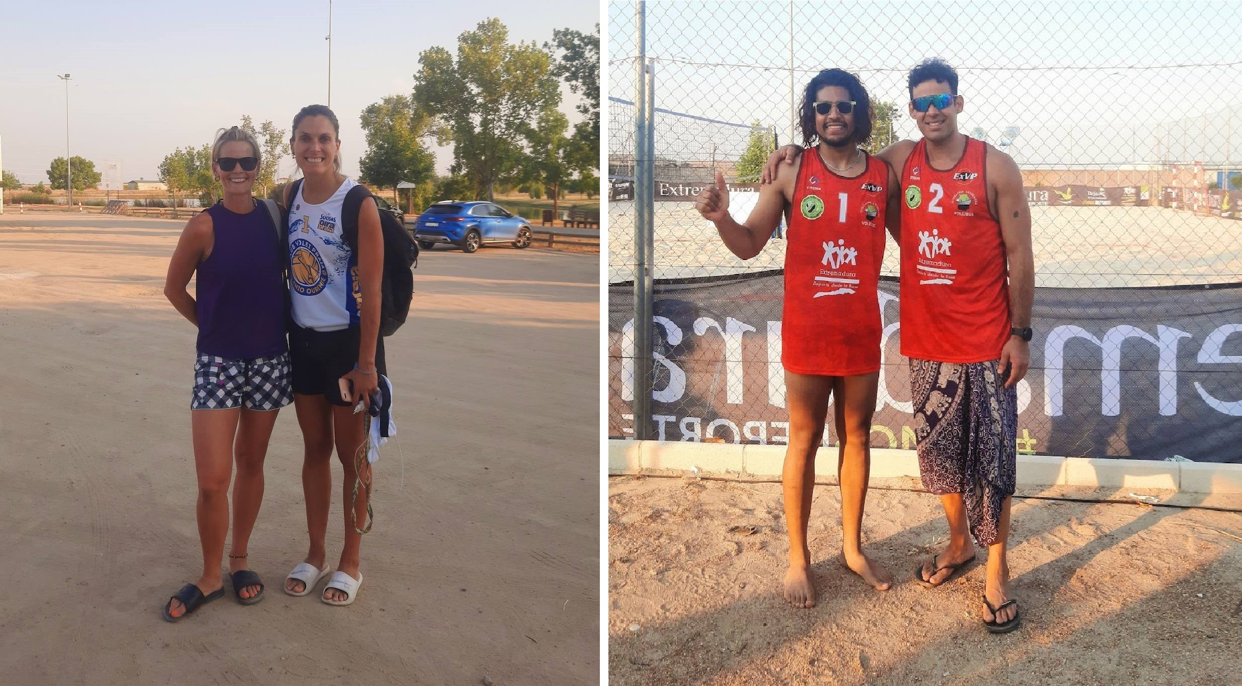 Las parejas Olga Matveeva y Nazaret Florian y Félix Vásquez y Miguel Villasmil, ganadores del I Torneo extremeño de voley playa 2022