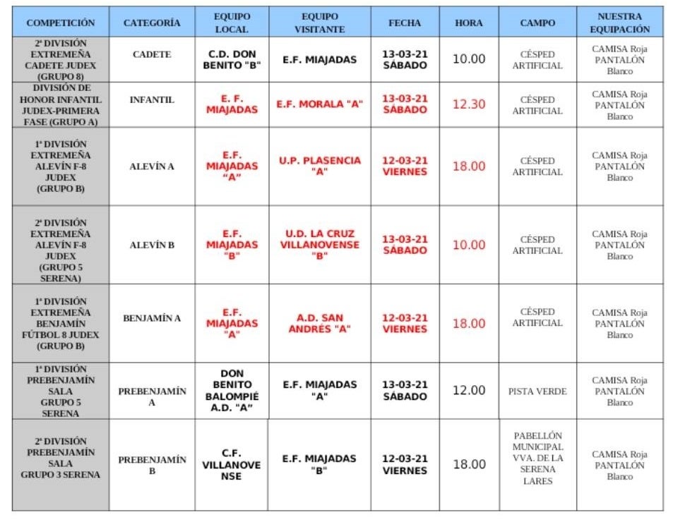 Infantiles, alevines y benjamines jugarán en casa mientras los cadetes y prebenjamines lo harán fueraLas categorías inferiores del fútbol miajadeño vuelven este fin de semana para el deleite de los aficionados, que podrán disfrutar del deporte desde esta misma tarde.