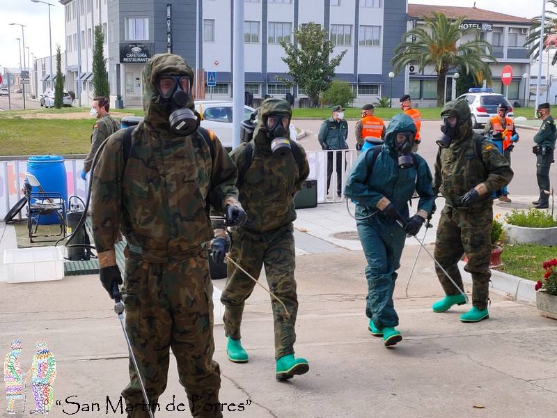 La UME desinfectó ayer el interior de las residencias de mayores de Miajadas