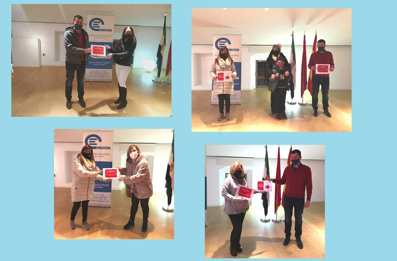 Los dueños de los establecimientos 'Woman's Boutique', 'Pecados Complementos', 'Centro Óptico Miajadas' y 'Floristería Abril' recogieron sus premios a los escaparates navideños más votados.