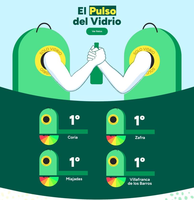 Miajadas, Coria, Villafranca de los Barros y Zafra compiten desde esta semana en el reto 'El Pulso del Vidrio', impulsado por Ecovidrio por liderar el ... ranking extremeño de sostenibilidad.