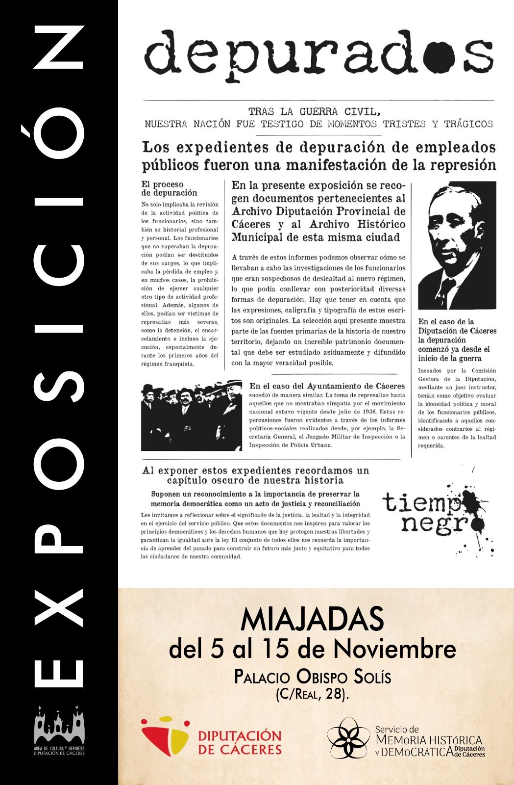 El palacio Obispo Solís acoge hasta el 15 de noviembre la exposición 'Depurados', que versa sobre funcionarios de la Diputación de Cáceres que fueron apartados de sus funciones por motivos políticos entre 1936 y 1948.