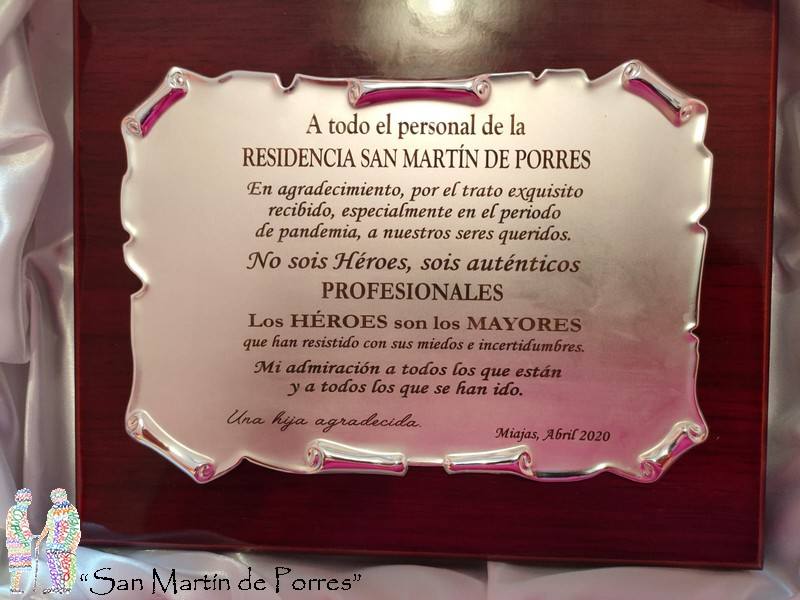 Trabajadores y residentes han recibido una tarta de chocolate, almendras garrapiñadas y tostadas, roscas fritas, recetas, nevaditos y una placa para los 'héroes' y los verdaderos profesionalesLos trabajadores y mayores de la residencia San Martín de Porres de Miajadas han recibido el agradecimiento de los familiares de sus residentes de una ... forma dulce y emotiva.