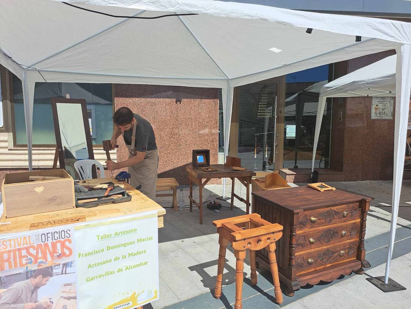 Así, de 10:00 a 21:30 horas, la plaza del ayuntamiento se convirtió en la Plaza de Artesanos y se pudieron visitar stands y asistir a demostraciones en vivo de textil, piel, madera, joyería, vidrio, alfarería, fibras vegetales, cerámica, esparto o bisutería.