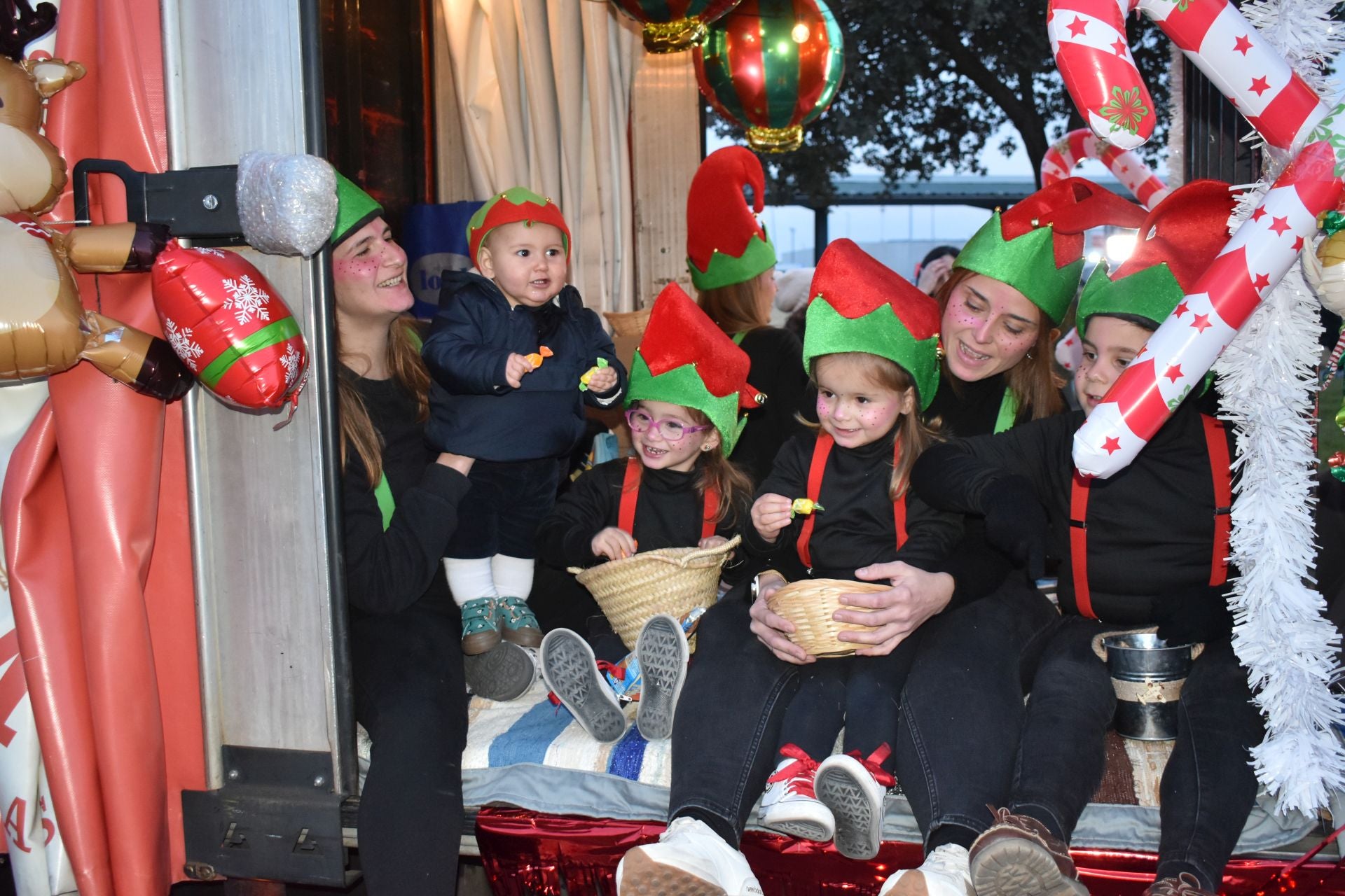 Sus Majestades de Oriente estuvieron acompañados por carrozas de temáticas variadas como violinistas, granjas, cascanueces cocineros, renos, muñecos de jengibre, ángeles, duendes, payasos, magos y personajes de las Mil y una noches que llegaron con ellos desde el Lejano Oriente. Por supuesto, el portal de Belén con la Virgen María, San José y el niño Jesús, escoltados por las antorcheras, encabezaban la comitiva.