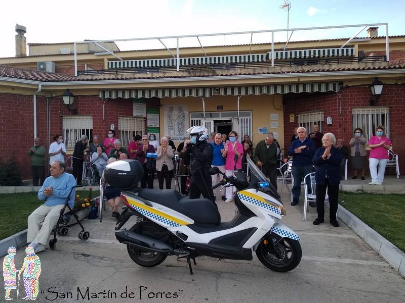 Un representante de la Policía Local de Miajadas compartió esta semana el aplauso de las 20 horas con los mayores de la residencia San Martín de Porres, que quisieron mostrarle su agradecimiento por cuidar de ellos y de los vecinos de la localidad.