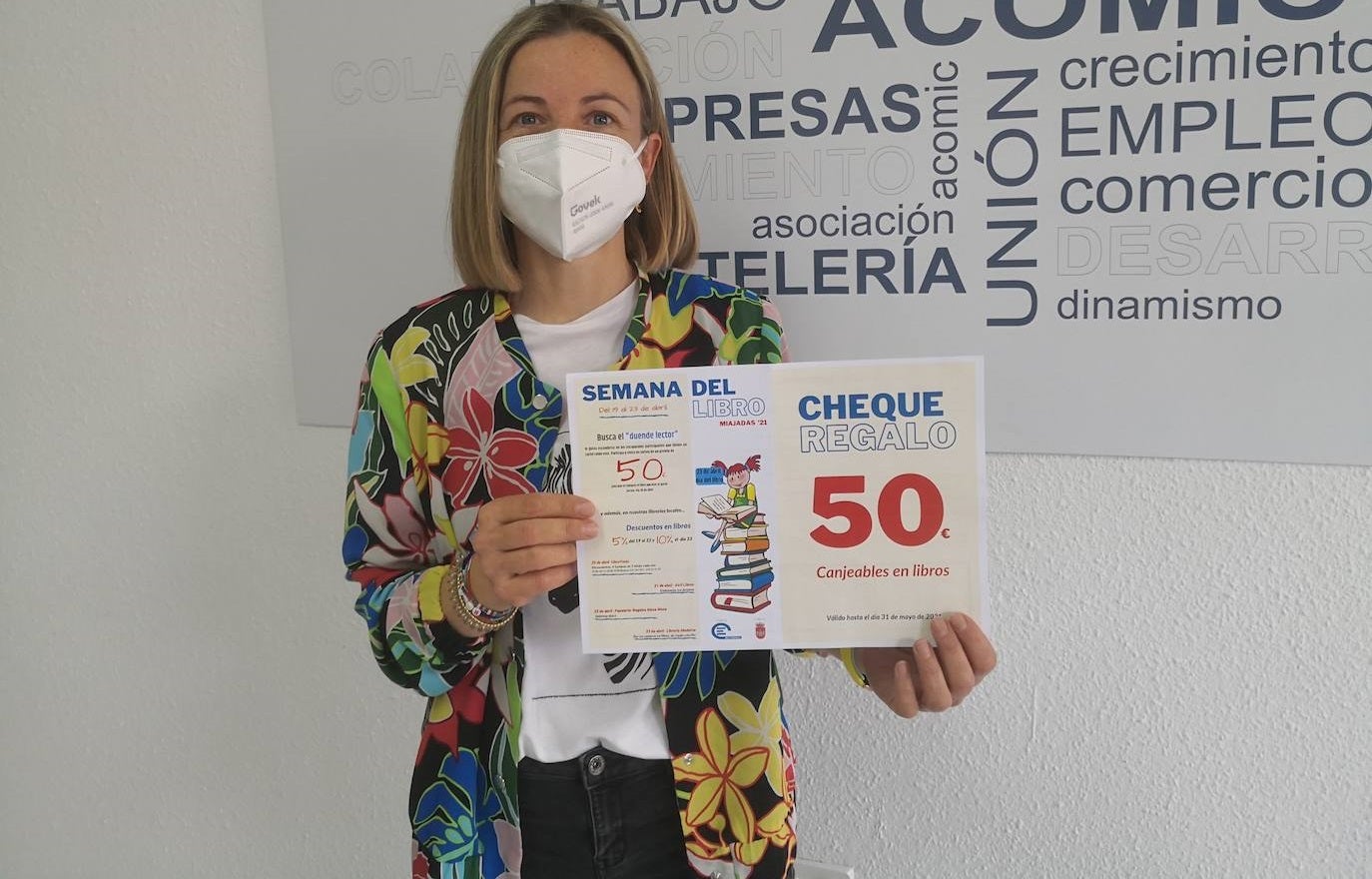 Raquel Nieto Masa, ganadora del cheque por valor de 50 euros en libros, ha recogido su cheque en la sede de Acomic Miajadas.