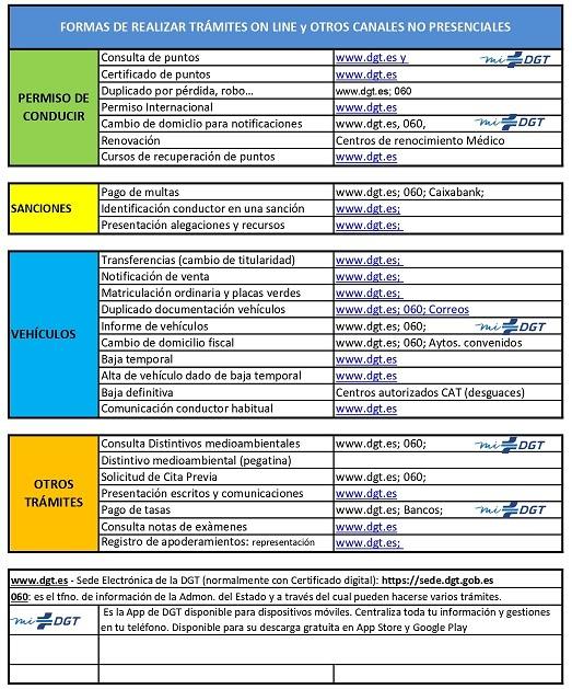 No es necesario acudir presencialmente a la Jefatura para solventar documentación relacionada con el permiso de conducir, sanciones, todo lo relacionado con vehículos y otros trámites que pueden consultarse en el enlace DGT Servicios online o en la siguiente tabla.