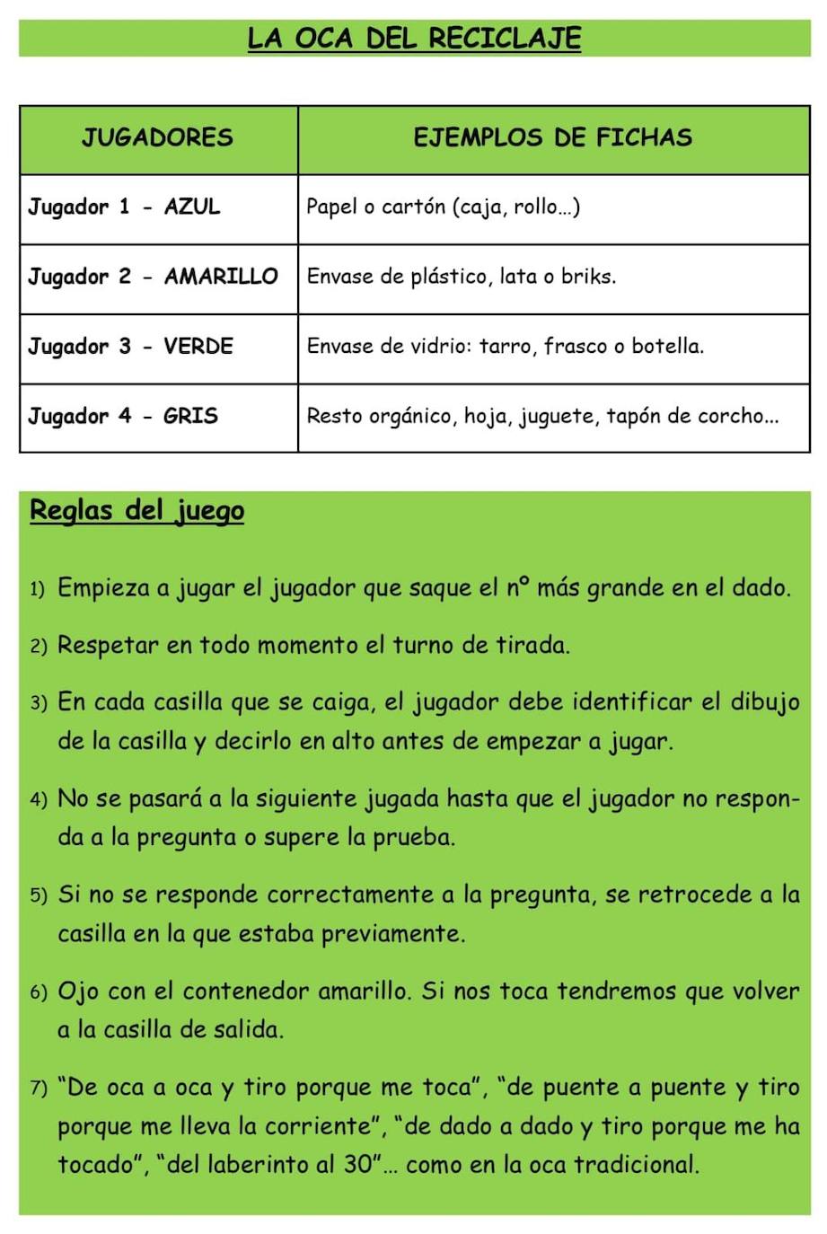 Pueden descargarse la imagen del tablero para imprimirlo o dibujarlo y colorearlo ellos mismosEl Área de Medio Ambiente del Ayuntamiento de Miajadas ha querido hacer llegar a sus vecinos más pequeños, y a los no tan pequeños, una ... nueva versión del tradicional Juego de la Oca llamada 'La Oca del Reciclaje'.