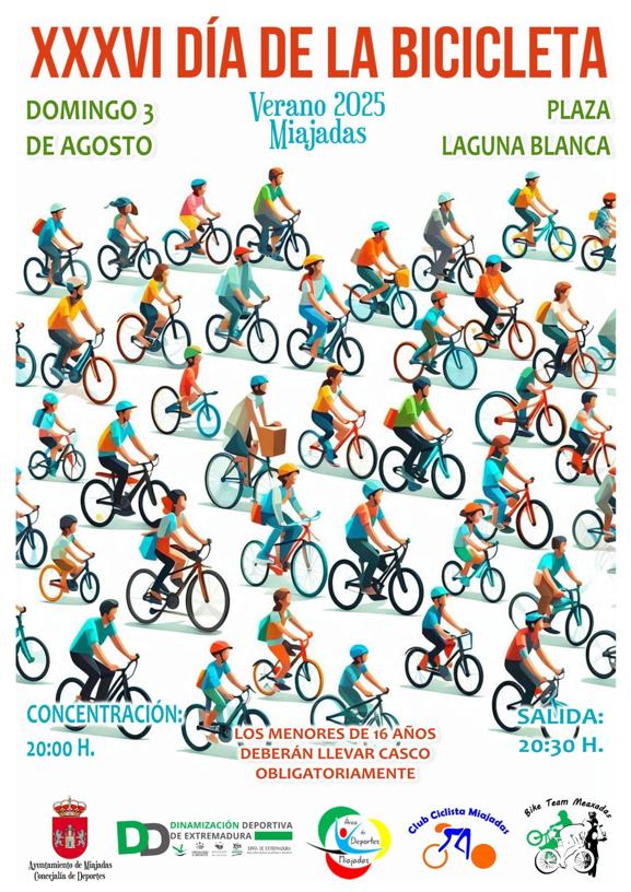 Llega agosto y Miajadas se prepara para disfrutar de más de medio mes de actividades. En el nutrido programa de eventos organizado para estas Feria y Fiestas de Agosto 2025 tienen cabida tanto actos lúdicos, culturales, musicales y deportivos y entre estos últimos se celebrará una de las citas habituales de cada verano; el Día de la Bicicleta, que este año cumple su XXXVI edición.