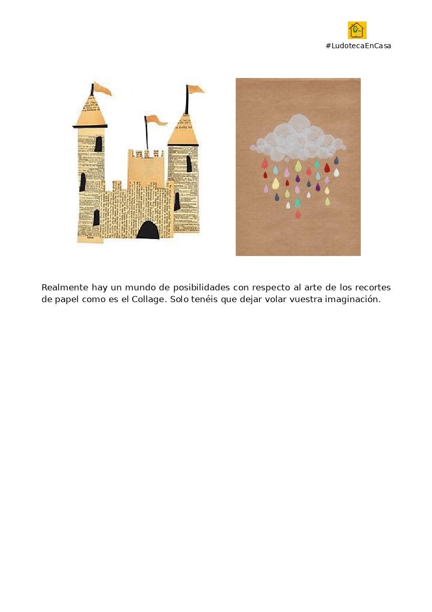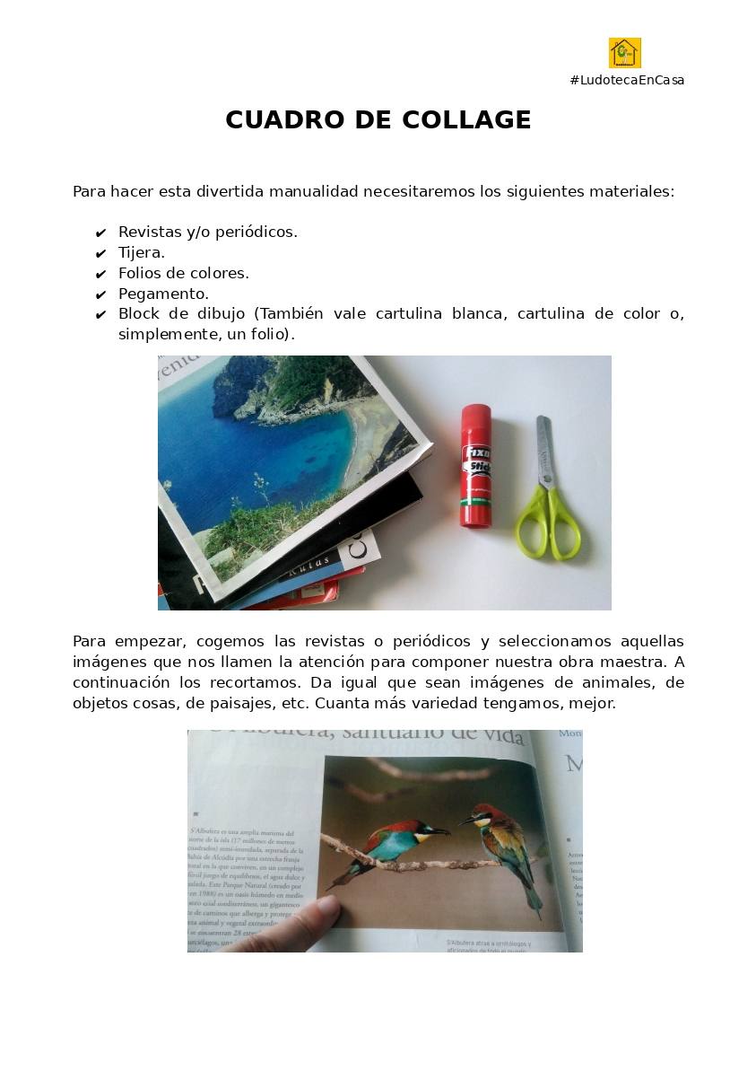 Al mismo tiempo, los dinamizadores juveniles Eduardo, Vicky, Laura y Lorena, han preparado una manualidad para sus alumnos: el collage, una técnica muy creativa que invita a crear mundos y personajes fantásticos. Para convertirse en artistas tan sólo necesitan revistas, periódicos o folios de colores, tijera y pegamento, crear una obra de arte digna de un museo y enviar una foto a cjludotecamiajadas@gmail.com o cultura@miajadas.org
