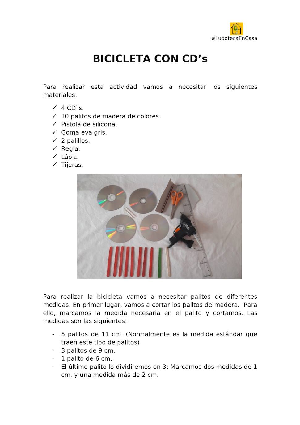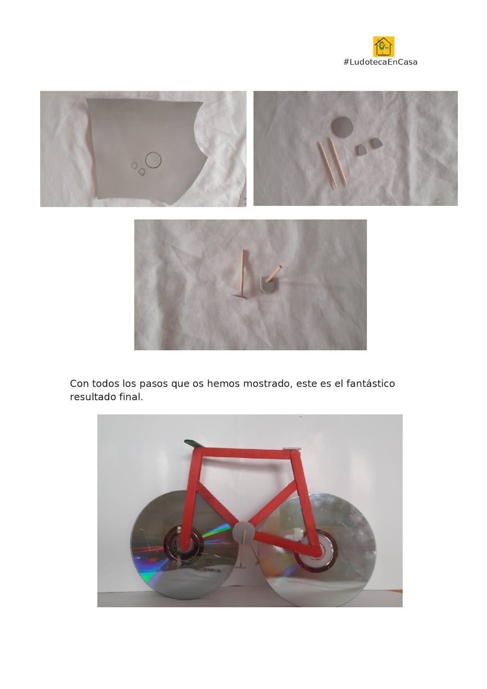 Los alumnos realizaron su propia bicicleta reciclada en miniatura con cds, para conmemorar el día establecido por la ONU para resaltar la importancia de la bicicleta como medio de transporte sostenible y saludableLos alumnos de las Ludotecas de Miajadas, Alonso de Ojeda y Casar de Miajadas celebraron ayer el Día Mundial de la bicicleta realizando una original ... maqueta de una bicicleta.