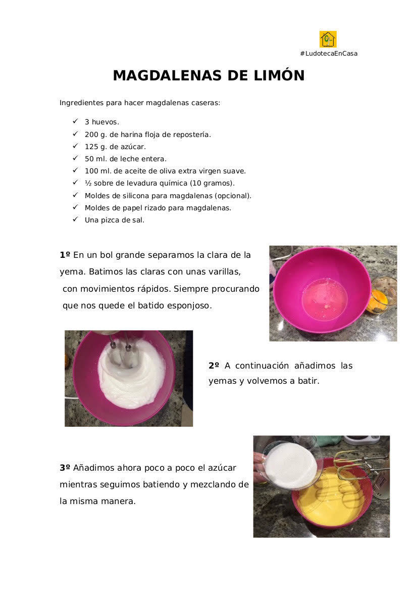 Los alumnos deben enviar una foto con el resultado de las magdalenas a las direcciones cjludotecamiajadas@gmail.com y cultura@miajadas.org