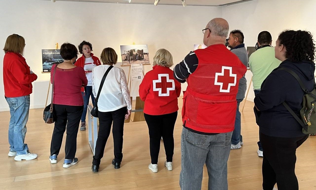 Ana Mª Pavón, Técnico de Cruz Roja, fue la encargada de guiar a los asistentes por la exposición para trasladar el objetivo de la misma y el significado de las obras.